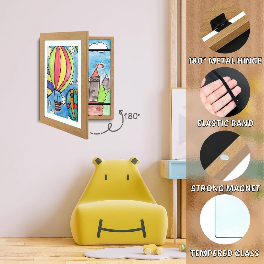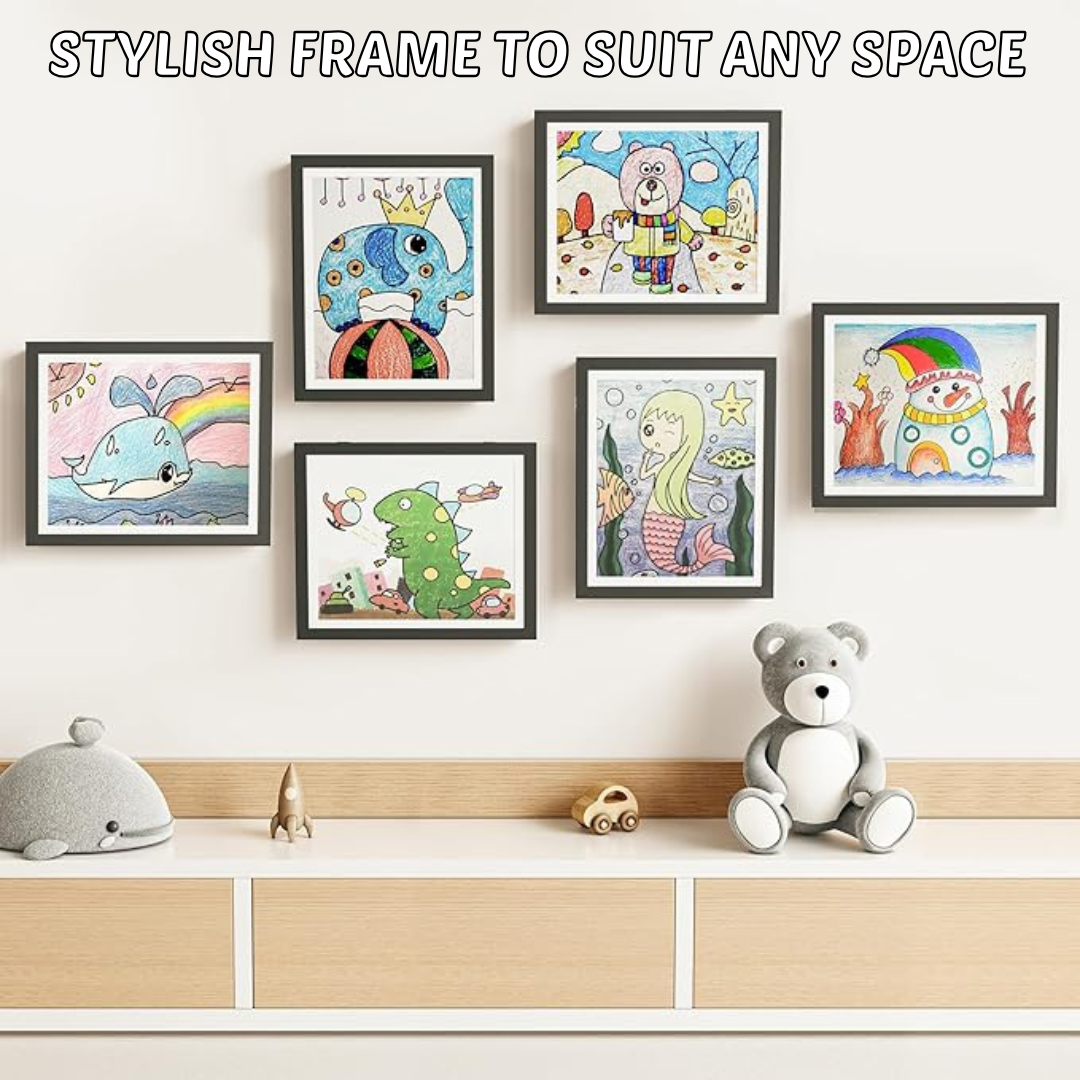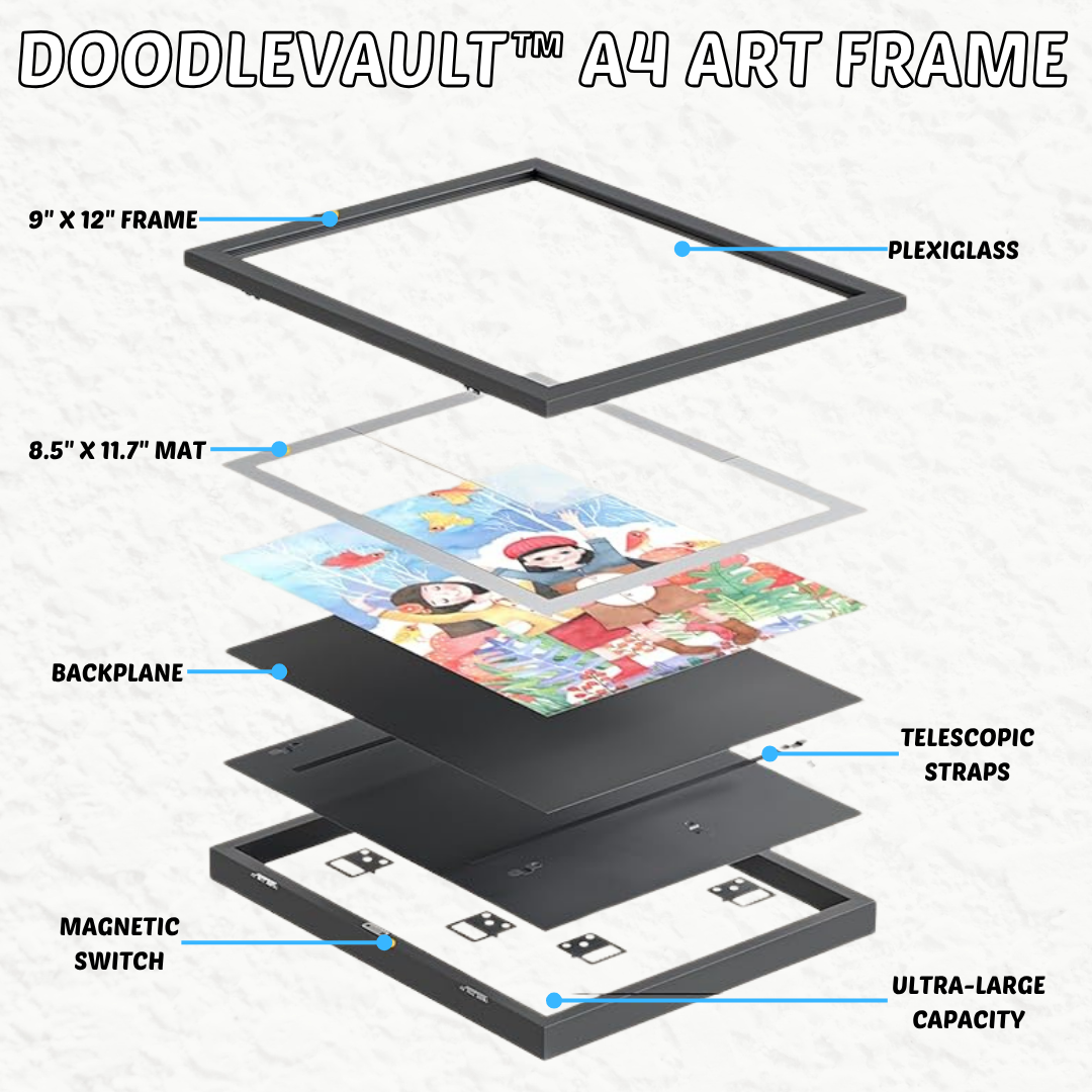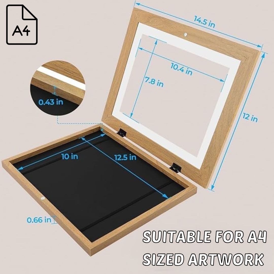 ✅ Deep Storage Capacity: DoodleVault™ has a deep A4 frame that safely stores a large collection of artwork and showcases the favorite piece. This keeps artwork organized and protected, reducing clutter while preserving special memories.