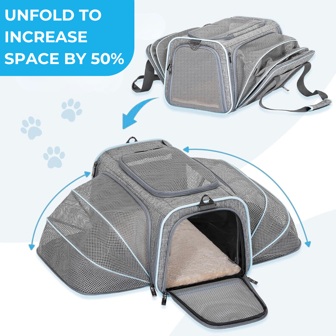 ✅ Expandable Spacious Design: PawsGo™ expands from 19.5x12x12 inches to 31.5x19x12 inches with dual mesh sides. The extra space allows pets to move and stretch, easing anxiety and making longer journeys far more comfortable and calming.