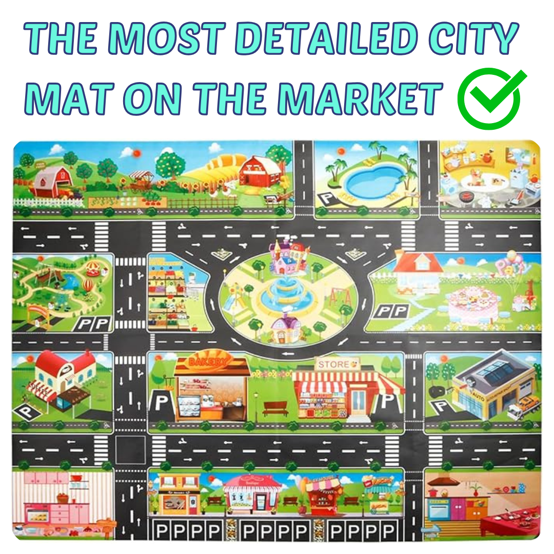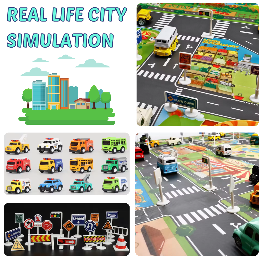 ✅ Immersive Play Experience: Featuring a detailed city road map with buildings like a fire station, hospital, and school, plus traffic signs. TinyTraffic™ creates a rich miniature world that sparks imaginative play and endless creativity.