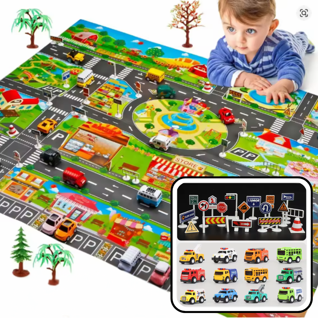 TinyTraffic™ Educational Rug turns everyday play into an interactive learning experience with its vibrant city map, realistic traffic signs, and vehicles. This dynamic setup promotes cognitive growth, spatial awareness, and cooperative play in a fun and hands-on environment. With a durable, easy-to-clean design, it transforms playtime into a more organized, educational, and engaging activity.